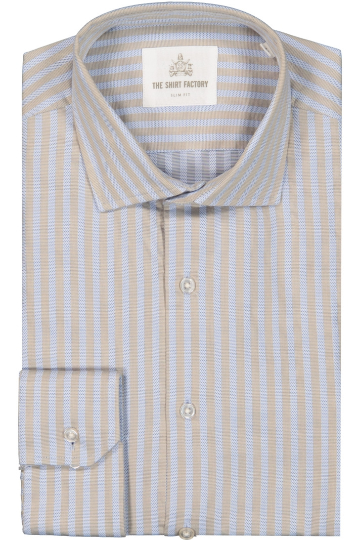 Skjorta från The shirt factory.Bandon.Artikelnummer: 2152903SAH-5D- Slim fit- Cut away krage- Vinklad manschett- Knappknäppning framtill- RandigTack för att du handlar i vår webbshop. Besök oss även i vår butik i Vingåker. Läs mer på www.vfo.se
