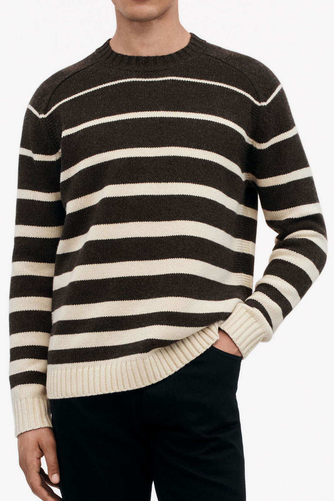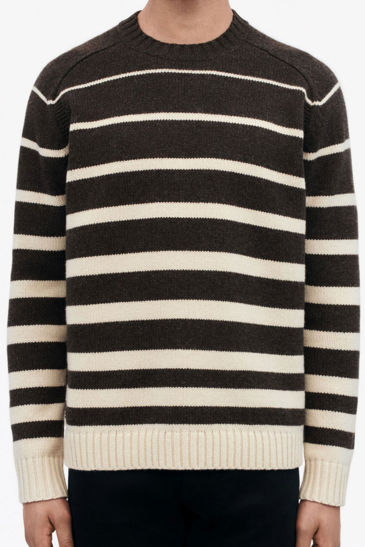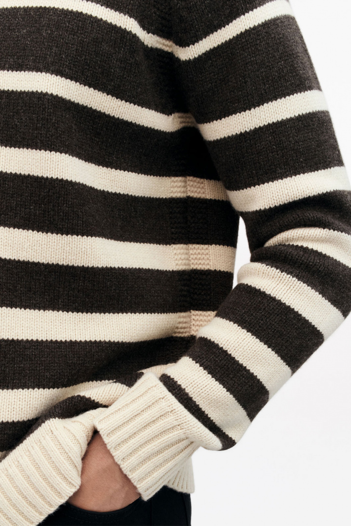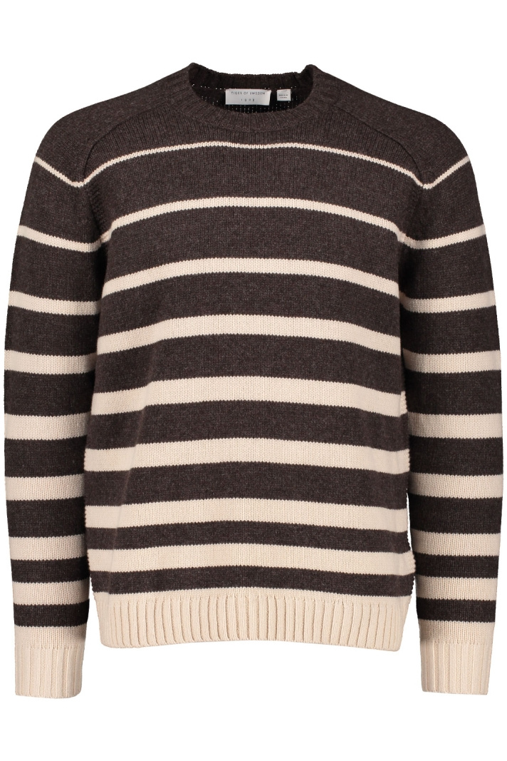 Stickad tröja från Tiger of Sweden.Adryan Rws T71524.Tygnummer: T71524Färgkod: 182- Normal passform- Rundad halsringning- Mudd i krage, ärmslut och nedtill- Randig- Stickad- Tröja herrAdryan Rws T71524 Tröja från Tiger Man - En Tidlös Favorit för HerrenUpptäck den stiliga och mångsidiga Adryan Rws T71524 Tröjan från Tiger Man. Denna tröja är designad för att passa en modern livsstil med en normal passform som ger både komfort och stil. Oavsett om du klär dig för en casual dag på stan eller för en kväll med vänner, är denna tröja ett perfekt val.Tillverkad av 100% merinoull erbjuder Adryan-tröjan en mjuk och behaglig känsla mot huden. Merinoullen är känd för sina värmande egenskaper, samtidigt som den är andningsbar och absorberar fukt effektivt. Detta gör att tröjan håller dig varm utan att bli överhettad, vilket är perfekt för alla årstider.Tröjan har en elegant rundad halsringning som gör den både klassisk och smakfull. Designdetaljer som mudd i krage, ärmslut och nedtill bidrar till ett väl genomtänkt och stilrent utseende. Den randiga mönstringen ger ett dynamiskt inslag som är lätt att kombinera med olika plagg i din garderob.Genom att investera i Adryan Rws T71524 Tröjan får du ett plagg som är lika funktionellt som det är stiligt. Med sin tidlösa design och högkvalitativa material kommer denna tröja att bli en favorit i din basgarderob. Dess mångsidighet gör att den kan användas vid olika tillfällen och lätt kombineras med både jeans och chinos.Uppgradera din stil med denna klassiska och eleganta tröja. Skapa en look som står ut och känn skillnaden med en tröja som kombinerar komfort, kvalitet och stil. Beställ din Adryan Rws T71524 Tröja från Tiger Man idag och njut av en tidlös modeinvestering!Tack för att du handlar i vår webbshop. Besök oss även i vår butik i Vingåker. Läs mer på www.vfo.se
