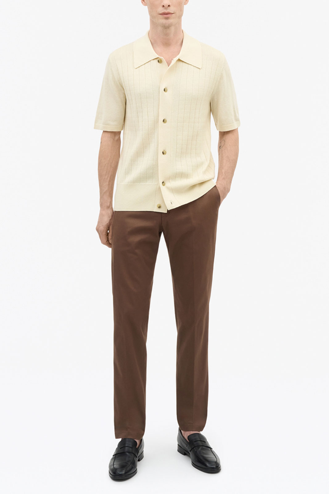 Piké från Tiger of Sweden.Araawen Rws T72057.Artikelnummer: T72057- Normal passform- Klassisk krage- Knappknäppning framtill- Stickad- Piké herrAraawen Rws T72057 Tröja från Tiger Man - Elegans för HerrarUpptäck subtil klass och komfort med Araawen Rws T72057 tröjan från Tiger Man. Denna stickade pikétröja kombinerar en tidlös design med moderna detaljer, vilket gör den till det perfekta valet för den stilmedvetna mannen. Med sin normala passform sitter tröjan behagligt på kroppen och erbjuder både rörelsefrihet och en smickrande silhuett. Den klassiska kragen och knappknäppningen framtill ger en sofistikerad touch som passar utmärkt både vid avslappnade tillfällen och mer formella sammanhang. Tröjan är tillverkad av en exklusiv blandning av merinoull (55%) och bomull (45%), vilket ger en mjuk och behaglig känsla mot huden. Merinoullen har värmande egenskaper och är samtidigt andningsbar, perfekt för att hålla dig varm under kyliga dagar utan att överhettas. Bomullen bidrar till hållbarhet och gör plaggutsmyckningen rivet och stilrent. Denna tröja från Tiger Man är inte bara en modeinvestering utan också en funktionell del av din garderob. Oavsett om du klär upp dig för en dag på kontoret eller ned för en weekendutflykt, så kommer Araawen Rws T72057 alltid att göra ett gott intryck. Gör ett smart val som förenar stil och kvalitet. Låt Araawen Rws T72057 tröjan bli en viktig del av din klädstil och ett pålitligt val för olika tillfällen. Optimera din garderob med denna tidlösa klassiker - en perfekt hörnpelare för alla herrar som värdesätter stil och komfort!Tack för att du handlar i vår webbshop. Besök oss även i vår butik i Vingåker. Läs mer på www.vfo.se