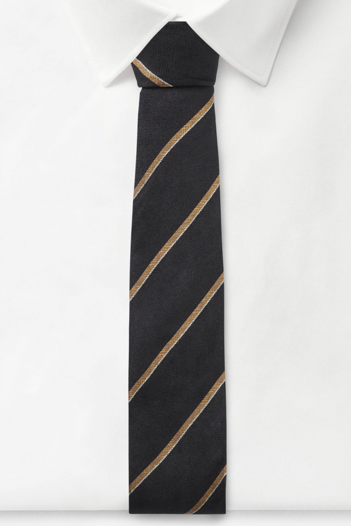 Slips från Tiger of Sweden.Architex.Tygnummer: T72451Färgkod: 221- 7 cm- Randig- Slips herrArchitex slips från Tiger of Sweden - 7 cm Uppgradera din stil med Architex slips från Tiger of Sweden. Denna eleganta slips är designad för den moderna mannen som värdesätter både kvalitet och stil. Med en bredd på 7 cm erbjuder den en perfekt balans mellan klassisk och samtida stil, vilket gör den idealisk för både affärsmöten och festliga tillfällen.Slipsen är tillverkat av 100% silke, vilket ger en lyxig känsla och en fin glans som fångar ögat. Det mjuka och följsamma materialet gör att slipsen enkelt knyts och sitter bekvämt runt halsen hela dagen.Det randiga mönstret ger en modern och stilren touch. Randningen skapar ett visuellt intressant element som kompletterar olika klädstilar, oavsett om du bär en skräddarsydd kostym eller en mer avslappnad skjorta. Med Architex slips från Tiger of Sweden får du inte bara en accessoar av hög kvalitet, utan också en produkt som accentuerar din personliga stil. Den perfekta kombinationen av elegans och komfort gör detta slips till ett utmärkt val för varje man som vill sticka ut med stil.Välj Architex slips från Tiger of Sweden för en tidlös och stilren look. Det är en idealisk accessoar för alla tillfällen som kräver att du ser ditt bästa ut. Förbättra din garderob med detta högkvalitativa silkeslipsen - ett smart val för den stilmedvetna mannen.Tack för att du handlar i vår webbshop. Besök oss även i vår butik i Vingåker. Läs mer på www.vfo.se