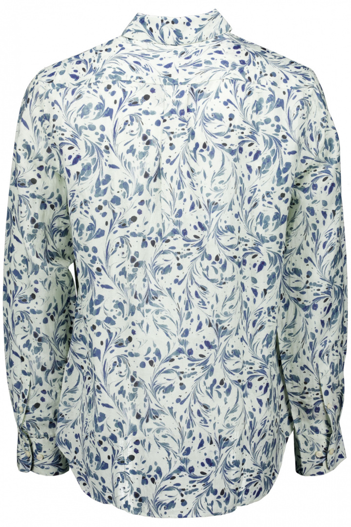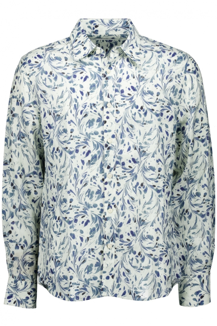 Skjortan är tillverkad i en skön linne- och viskosblandning (48% linne, 52% viskos). Denna kombination ger bra andningsförmåga och en behaglig svalka under varma dagar, samtidigt som viskosens mjuka fall ger ett lent drapeé över kroppen. Denna blandning gör också att skjortan faller snyggt och känns bekväm hela dagen. Den mångsidiga designen gör det enkelt att bära den tillsammans med jeans för en avslappnad look, eller med chinos när du vill ha en lite mer polerad stil.