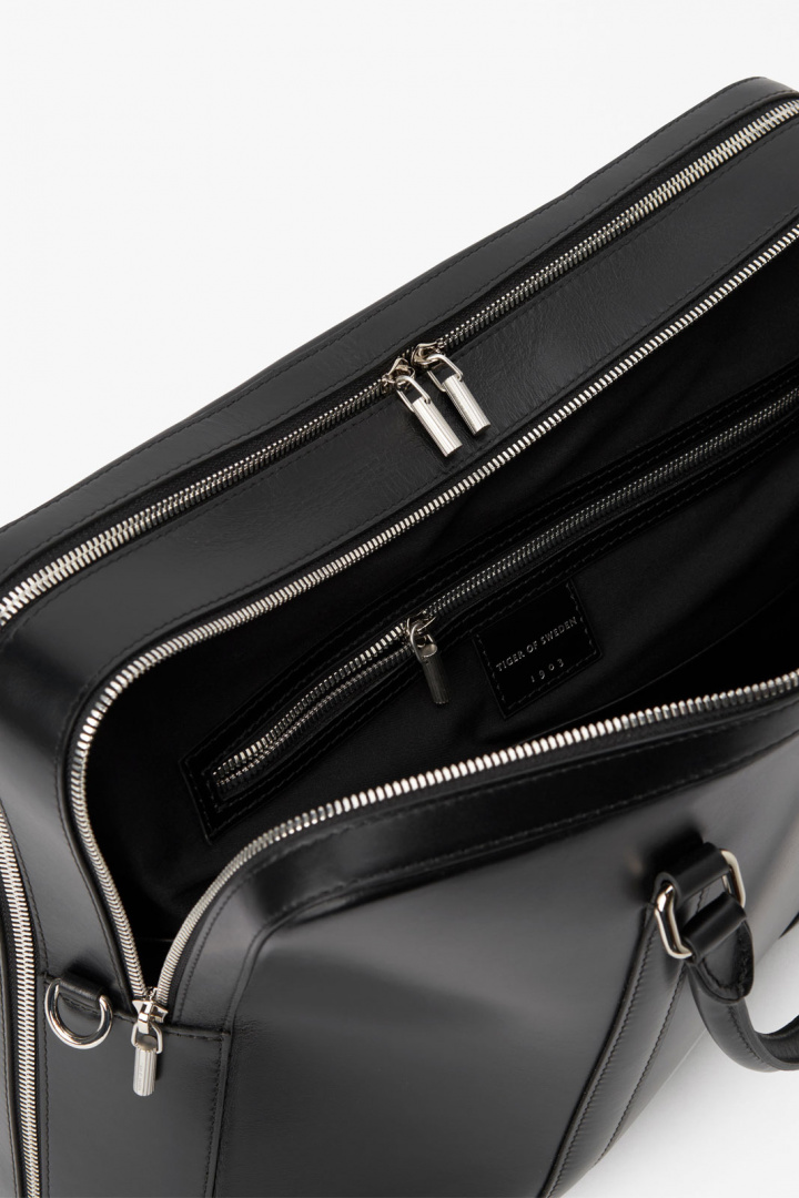 Skinnväskor från Tiger of Sweden.Brevis L.Tygnummer: T69097Färgkod: 050- Mått: 41 x 32 x 9,5 cm- Portfölj i slätt premiumläder- Strukturerad form- Två fack med blixtlås- Ett öppet fack och ett blixtlåsfack inuti- Diskret präglad logo framtill ton-i-ton- Blixtlåsdragtapp med logo- Justerbar och avtagbar axelrem i läder med logoförsett spänne- Rymmer en 17-tumsdator- Foder i viskosblandning- Skinnväska herrBrevis L-väska från Tiger Man är en professionell följeslagare som förenar klassisk elegans med modern funktion. Med måtten 41 x 32 x 9,5 cm erbjuder den en slank, strukturerad profil som passar lika bra som portfölj till mötet som som vardagsväska på resan. Den släta premiumlädern ger en exklusiv känsla i varje detalj, och den diskreta ton-i-ton präglade logotypen framtill understryker designens sofistikerade karaktär utan att vara påträngande. Väskan rymmer en 17-tums dator och är utformad med omtanke om organisering. Den har två yttre fack med blixtlås för dokument och mindre tillbehör, samt ett innerfack som är uppdelat i ett öppet fack och ett blixtlåsfack - perfekt för att hålla pennor, laddare och viktiga anteckningar prydligt separerade. Fodret i viskosblandning känns sval och mjukt mot innehållet samtidigt som det bidrar till en högkvalitativ känsla under användning. Den blivit avsedd för den som vill ha en robust arbetsväska som samtidigt ser stilren ut. Brevis L har en justerbar och avtagbar axelrem i läder med ett logoförsett spänne, vilket gör den bekväm att bära oavsett kroppstyp eller användningsscen. Denna läderväska för herrar kombinerar hållbarhet med en tidlös design och är därmed ett säkert val för kontoret, affärsresan eller vardagligt bruk där ett professionellt intryck är viktigt. Den enkla, men väl tilltänkta detaljeringen - det diskreta draget med logotyp och den förseglade accessen i innerfacken - gör Brevis L till en mångsidig väska som håller stilen år efter år. Välj Brevis L-väskan från Tiger Man om du söker en högkvalitativ skinnväska som är lika praktisk som stilfull - en pålitlig partner för din arbetsdag och dina affärsresor.Tack för att du handlar i vår webbshop. Besök oss även i vår butik i Vingåker. Läs mer på www.vfo.se