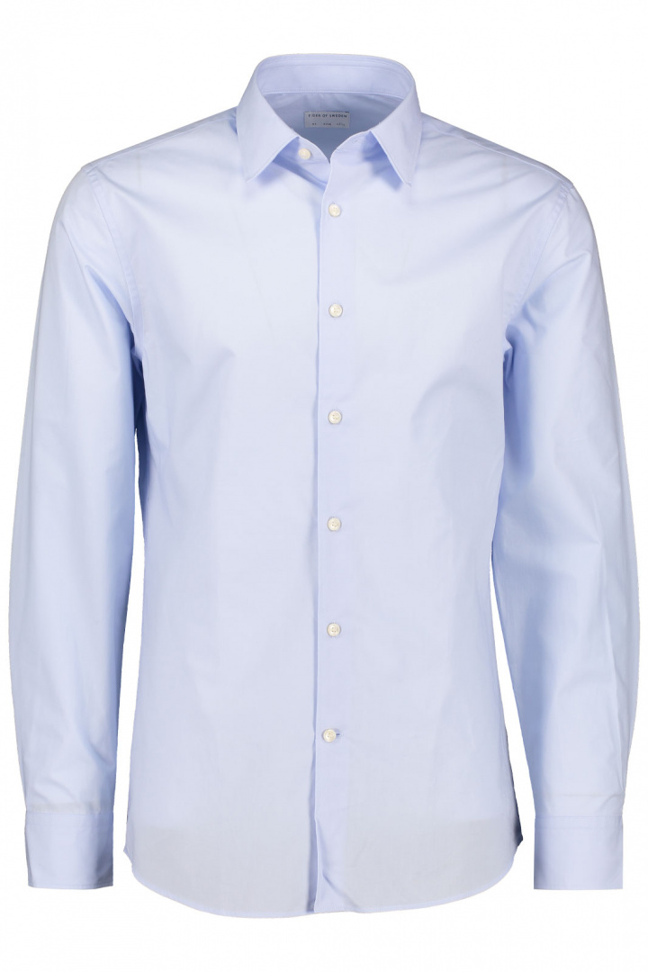 Skjortan har en skräddarsydd slim fit-modell som kramar om kroppen på rätt sätt utan att kännas åtsittande. Den klassiska kragen och rundade halsringningen ger en tidlös känsla, vilket gör den idealisk för både vardags- och festliga tillfällen. Knappknäppningen framtill för en lätt och stilren finish.