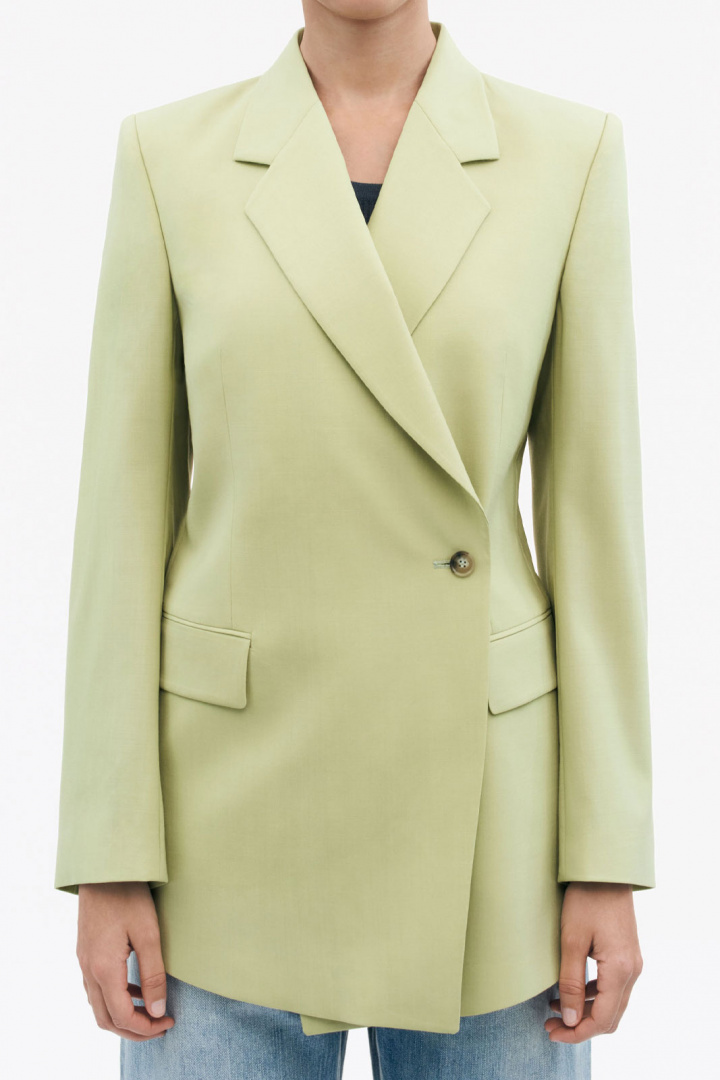 Kavaj från Tiger of Sweden.Eliwiraa S72404.Tygnummer: S72404Färgkod: 459- Oversize- Helfodrad- Vadderade axlar- Dubbelknäppt- Två fickor med lock- Enkelsprund- Kavaj damEliwiraa S72404 Blazer från Tiger - OversizeUppgradera din garderob med Eliwiraa S72404 Blazer, en elegant och mångsidig jacka för den moderna kvinnan. Denna blazer kombinerar stil och komfort på ett enastående sätt och erbjuder en tidlös look med en trendig oversize-passform.Eliwiraa-blazern har en avslappnad oversize-passform som ger frihet att röra sig utan att kompromissa med stilen. Vadderade axlar ger extra struktur och skapar en sofistikerad silhuett. Den dubbelknäppta designen tillsammans med de stilrena fickorna med lock skapar en balanserad och elegant look, perfekt för både vardag och mer formella tillfällen. Blazern har även ett enkelt sprund för ökad rörelsefrihet.Tillverkad av ett noggrant utvalt material, består Eliwiraa-blazern av 44 % ull, 54 % återvunnen polyester och 2 % elastan. Detta ger en fin kombination av värme, hållbarhet och stretch, vilket gör att plagget behåller sin form och känsla genom hela dagen. Det helfodrade inslaget i 100 % viskos ger en lyxig känsla mot huden och ökar komforten.Denna blazer är inte bara stilren utan också praktisk med sina fickor som erbjuder förvaring för dina nödvändigheter. Den tidlösa designen gör att den enkelt kan kombineras med olika plagg - från jeans till kjolar. Eliwiraa S72404 är ett utmärkt val för både kontoret och kvällar ute.Att investera i Eliwiraa-blazern är ett smart val för den stilmedvetna kvinnan. Den kombinerar funktionalitet och mode utan att kompromissa med komfort. Med sin hållbara design och tidlösa stil är detta ett plagg du kommer att njuta av säsong efter säsong.Gör ett stiligt val med Eliwiraa S72404 Blazer från Tiger och upplev en ny nivå av elegans och komfort!Tack för att du handlar i vår webbshop. Besök oss även i vår butik i Vingåker. Läs mer på www.vfo.se
