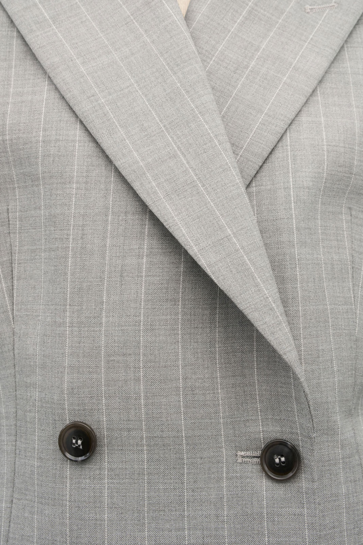 Elmi S00793 Blazer från Tiger Dam är en figursydd damkavaj som kombinerar en tidlös randig design med moderna detaljer för en professionell och elegant look. Den helfodrade konstruktionen tillsammans med vadderadeaxlar ger en stadig, smickrande silhuett och en välpolerad kimradsrygg som håller formen hela dagen. Den dubbla knäppningen förstärker den kraftfulla, affärsmässiga känslan, medan två fickor med lock erbjuder praktisk förvaring utan att bryta den rena linjen. Med en enkel sprund och en klassisk randig mönster får du en blazer som är lika bekväm som stilren, oavsett om du arbetar på kontoret eller deltar i formella möten.