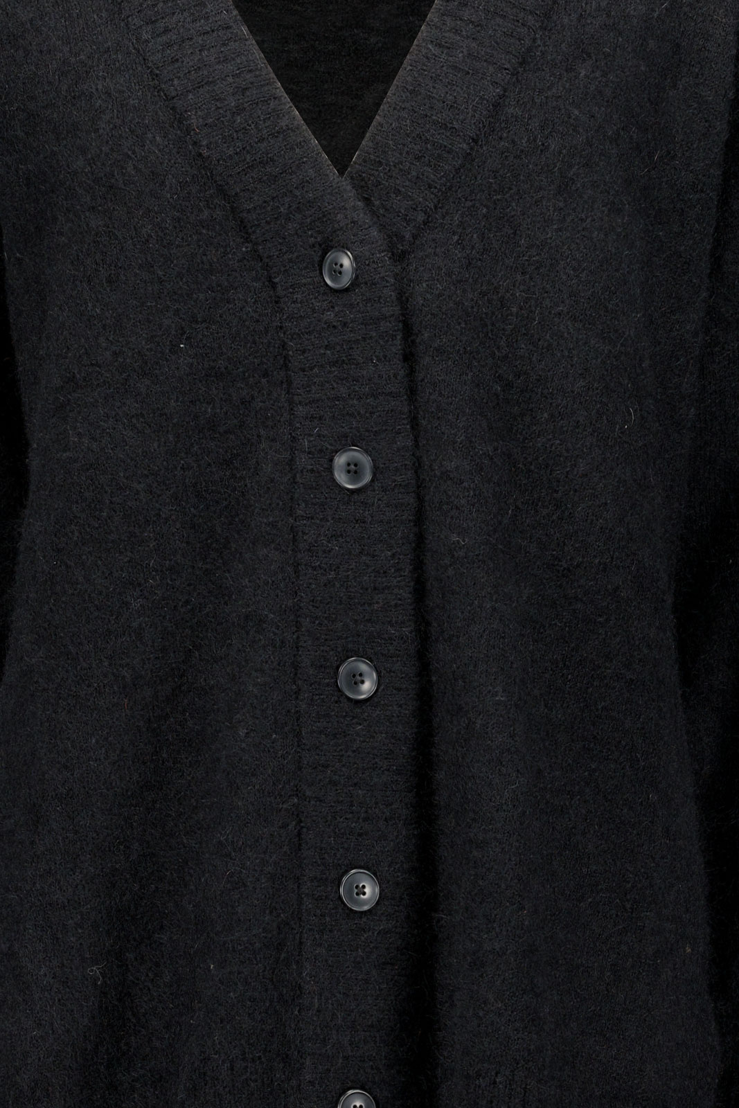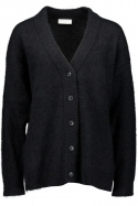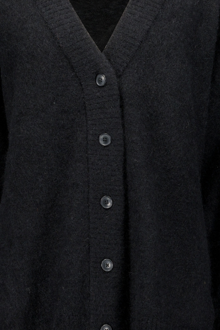 Den V-ringade halsen ger en smickrande, feminin siluett samtidigt som den klassiska frontknäppningen i-knapp ger dig möjligheten att justera stilen efter tillfälle. Den ribbade muddningen runt kragen, ärmsluten och nedtill skapar en tydlig struktur och hjälper plagget att behålla sin form, samtidigt som den bidrar till extra värme där det gör mest nytta. Den här stickade koftan känns både mjuk och lyxig mot huden, tack vare sin speciella blandning av material.