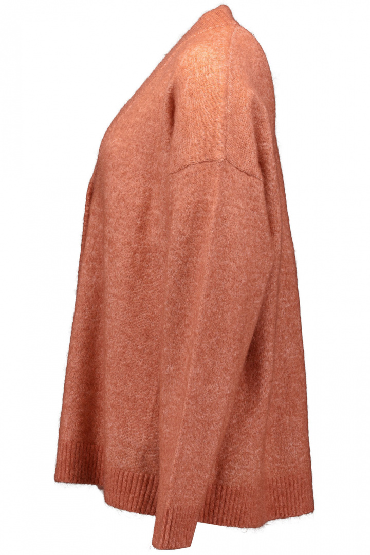 Materialet består av 34% ull och 34% mohair - en varm och fluffig kombination som ger en rik känsla och god isolering utan att kännas tung. Tillsammans med 27% polyamid erbjuder blandningen slitstyrka och stadga, medan 5% elastan ger en lätt stretch för bättre komfort och passform som följer kroppen utan att kännas restriktiv. Resultatet är en kofta som känns mjuk mot huden, känns lyxig och håller formen även vid vardaglig användning.
