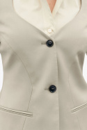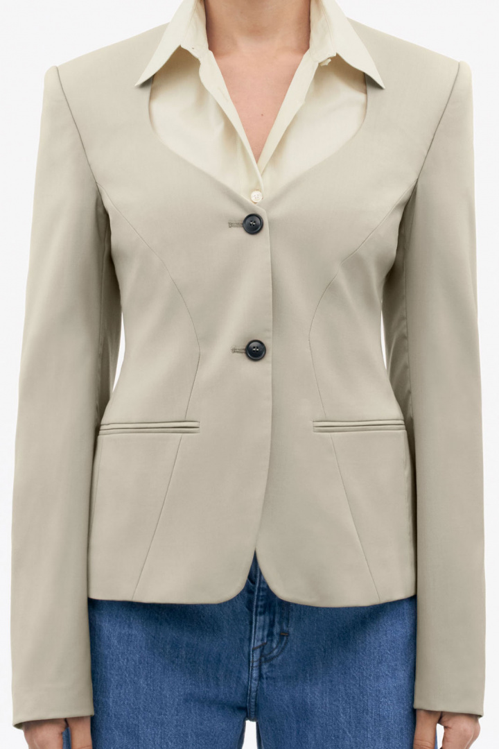 Kavaj från Tiger of Sweden.Jacy.Tygnummer: S72406Färgkod: 1R5- Slim fit- Helfodrad- Vadderade axlar- Två knappar framtill- Två öppna fickor- Enkelsprund- Kavaj damJacy blazer från Tiger - En tidlös kavaj för den moderna kvinnanUpptäck Jacy blazer från Tiger, en elegant och stilren kavaj som är perfekt för den självständiga och modevetna kvinnan. Med sin slim fit-passform ger denna blazer en smickrande silhuett som framhäver figuren på bästa sätt. Tillverkad av 100% ull är Jacy blazer både varm och hållbar, vilket gör den till ett utmärkt val för alla säsonger. Dess helfodrade design, med ett 100% viskosfoder, tillför en extra dimension av komfort och stil, vilket innebär att du känns lika bra som du ser ut. Med vadderade axlar erbjuder denna blazer en strukturerad look som skapar en stark och självsäker silhuett. De två knapparna framtill ger kavajen en klassisk känsla, medan de två öppna fickorna tillför både funktionalitet och stil. Den enkelsprund designen fulländar helheten, vilket gör Jacy blazer till en mångsidig detalj i din garderob. Oavsett om du ska på jobbet, en middag eller en kväll på stan, är Jacy blazer det perfekta valet. Den kan enkelt stylas med både byxor och kjolar, vilket ger dig oändliga möjligheter till olika looks. Investera i denna tidlösa kavaj och bli en del av en elegant och professionell stil som aldrig går ur tiden.Ge din garderob den uppdatering den förtjänar med denna fantastiska blazer - en kombination av kvalitetsmaterial och smart design som du inte vill vara utan!Tack för att du handlar i vår webbshop. Besök oss även i vår butik i Vingåker. Läs mer på www.vfo.se