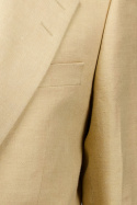 Till ytan är kavajen tillverkad i 100% linne, vilket ger en naturlig luftighet och ett svalt, andningsbart tyg som håller dig bekväm längre. Linningsmaterialet kombineras med en viscose-fodring som omger kroppen mjukt och gör plagget bekvämt att bära under hela dagen. Denna kombination gör blazer till ett praktiskt val för vår och sommar, när temperatur och stil kräver en lättare men ändå formell ytterklädsel.