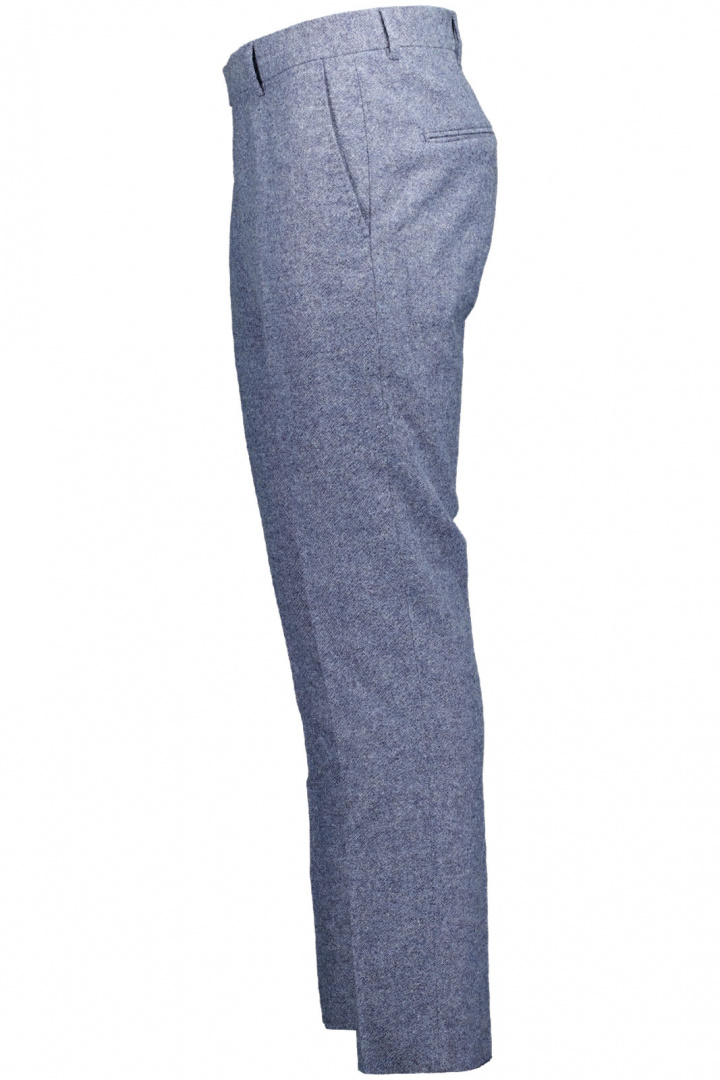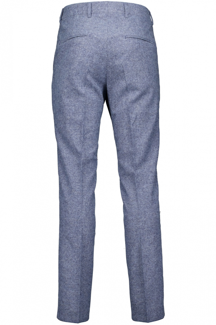 Tillverkad i en noga utvald blandning som kombinerar mångsidighet och hållbarhet: 59% återvunnen ull ger ett gediget woolfeel och en klassisk skjuts i utseendet, medan 32% polyester, 6% polyamid och 2% andra fibrer bidrar till slitstyrka och komfort. 1% elastan ger liten stretch där det behövs, så byxan sitter snyggt utan att kompromissa rörelsefrihet. Den praktiska designen kompletteras av öppna sidofickor och passpoalfickor baktill, som ger en tidlös detaljnivå samtidigt som de håller en ren och prydlig look. Hake och zipgylf gör stängningen enkel och säker, och den här kombinationen av material och detaljer gör Tenuta till ett smart val för herrar som vill ha en stilren, hållbar och lättmatchad kostymbyxa.