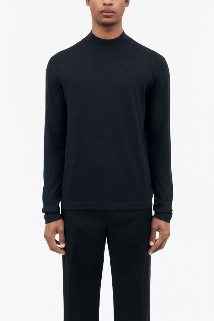 Den fint stickade strukturen ger tröjan en exklusiv känsla, medan muddarna i kragen, ärmsluten och nedtill skapar en perfekt passform som håller tröjan på plats. Den högre kragen ger extra skydd mot kyla och vind, vilket gör den idealisk för lager-på-lager-principen under vintern eller som ett stilfullt ensamt plagg i mildare väder.