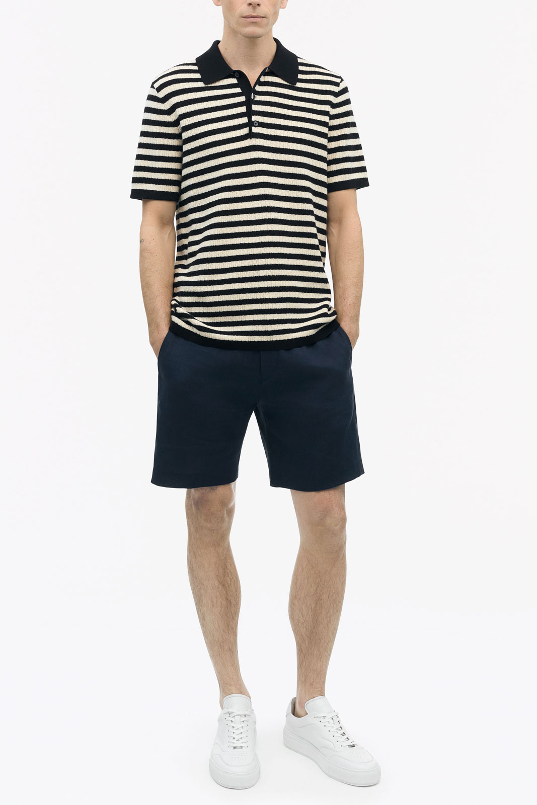 Linneshorts från Tiger of Sweden.Thiago T72167.Artikelnummer: T72167- Normal midja- Raka ben- Öppna sidofickor- Passpoalfickor baktill- Hake och zipgylf- Linneshorts herrThiago T72167 Shorts - Stilren Komfort för HerrarUpptäck Thiago T72167 Shorts från Tiger Man, den perfekta kombinationen av stil och funktion för den moderna mannen. Dessa shorts har en normal midja och raka ben, vilket ger en tidlös och klassisk look som passar perfekt för både avslappnade och mer uppklädda tillfällen.Med praktiska öppna sidofickor och passpoalfickor baktill erbjuder dessa shorts både stil och funktionalitet. Du kan enkelt förvara dina nödvändigheter utan att kompromissa med stilen. Hake och zipgylf säkerställer att du får en trygg och bekväm passform som håller hela dagen.Tillverkade av 100% linne, erbjuder Thiago T72167 Shorts en lätt och luftig känsla, perfekt för varma dagar. Linne är känt för sin andningsförmåga och hållbarhet, vilket gör dessa shorts till ett utmärkt val för både vardag och semester. Dessa shorts är inte bara bekväma och funktionella, utan också stiliga nog att bära i alla sammanhang. Den eleganta designen gör det lätt att matcha med olika skjortor och t-shirts, vilket gör dem till en mångsidig del av din garderob.Välj Thiago T72167 Shorts från Tiger Man för att njuta av en kvalitetsprodukt som kombinerar stil, komfort och användbarhet. Uppgradera din garderob idag!Tack för att du handlar i vår webbshop. Besök oss även i vår butik i Vingåker. Läs mer på www.vfo.se