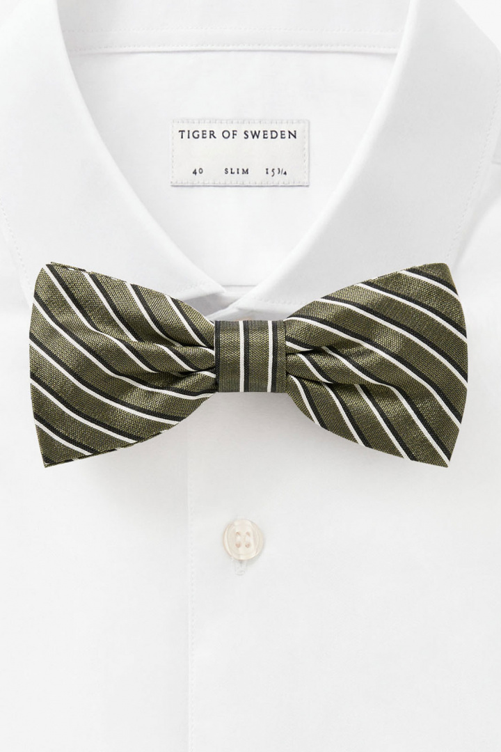 Fluga från Tiger of Sweden.Titus Bt.Tygnummer: T72371Färgkod: 420- Färdigknuten- Justerbar- Randig- Fluga herrTitus Bt Slips från Tiger Man - Färdigknuten fluga för herrUppgradera din stil med den eleganta Titus Bt slipsen från Tiger Man. Den färdigknutna flugan är det perfekta tillbehöret för varje herr som vill skapa en sofistikerad och tidlös look. Tillverkad av 100% högkvalitativt silke erbjuder denna slips en fantastisk glans och en mjuk känsla mot huden. Med sin stiliga randiga design utstrålar Titus Bt slipsen både klass och modern känsla. Den justerbara konstruktionen gör att den passar optimalt och sitter bekvämt, oavsett tillfälle. Oavsett om du ska på bröllop, fest eller en affärsmiddag, är denna fluga ett utmärkt val för att framhäva din personliga stil.Titus Bt slipsen kombinerar funktion och stil med sin färdigknutna design. Du slipper krånglet med knytande flugor, vilket sparar tid och säkerställer att du alltid ser välklädd ut. Den randiga mönstringen ger en subtil men distinkt karaktär som kan lyfta vilket outfit som helst.Denna slips är inte bara en accessoar; det är ett statement. Genom att investera i Titus Bt slipsen får du en stilren och elegant fluga som tål att användas vid flera tillfällen. Den högkvalitativa silke-tyget ger en långvarig hållbarhet och gör flugan till ett smart val för herrar med smak.Välj Titus Bt slips från Tiger Man för att alltid känna dig självsäker och stilig. Kombinera med en välsittande kostym eller skjorta för att fullända din look. Beställ din idag och upplev den perfekta sammanslagningen av komfort och stil!Tack för att du handlar i vår webbshop. Besök oss även i vår butik i Vingåker. Läs mer på www.vfo.se