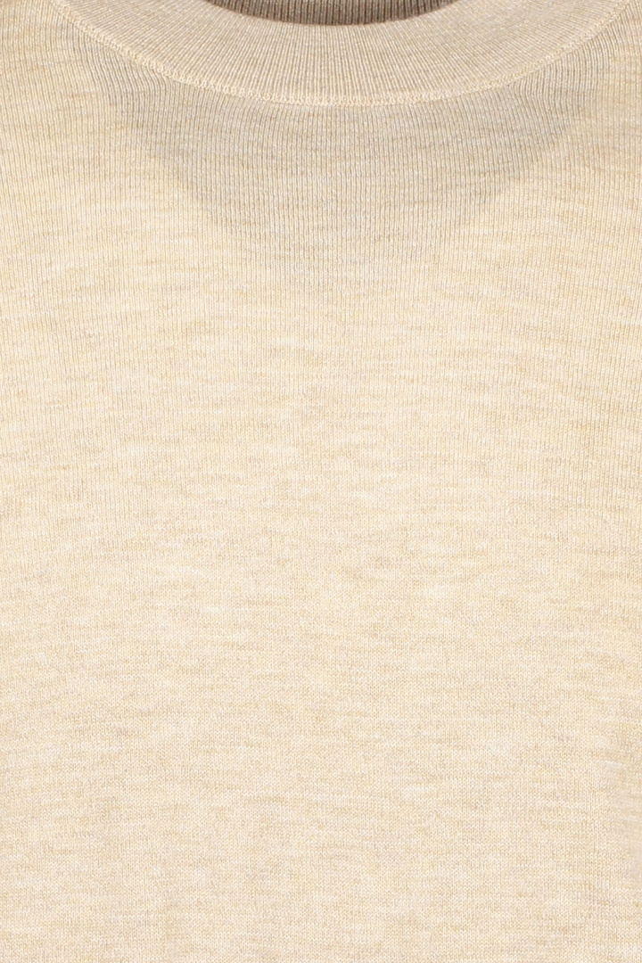 Tröjan är designad med en klassisk rundad halsringning och har muddar vid krage, ärmslut och nedtill som håller formen och ger en snygg och stilren silhuett. Den finstickade strukturen ger en subtil elegans och en mjuk känsla mot huden, vilket gör att den är perfekt att bära hela dagen.