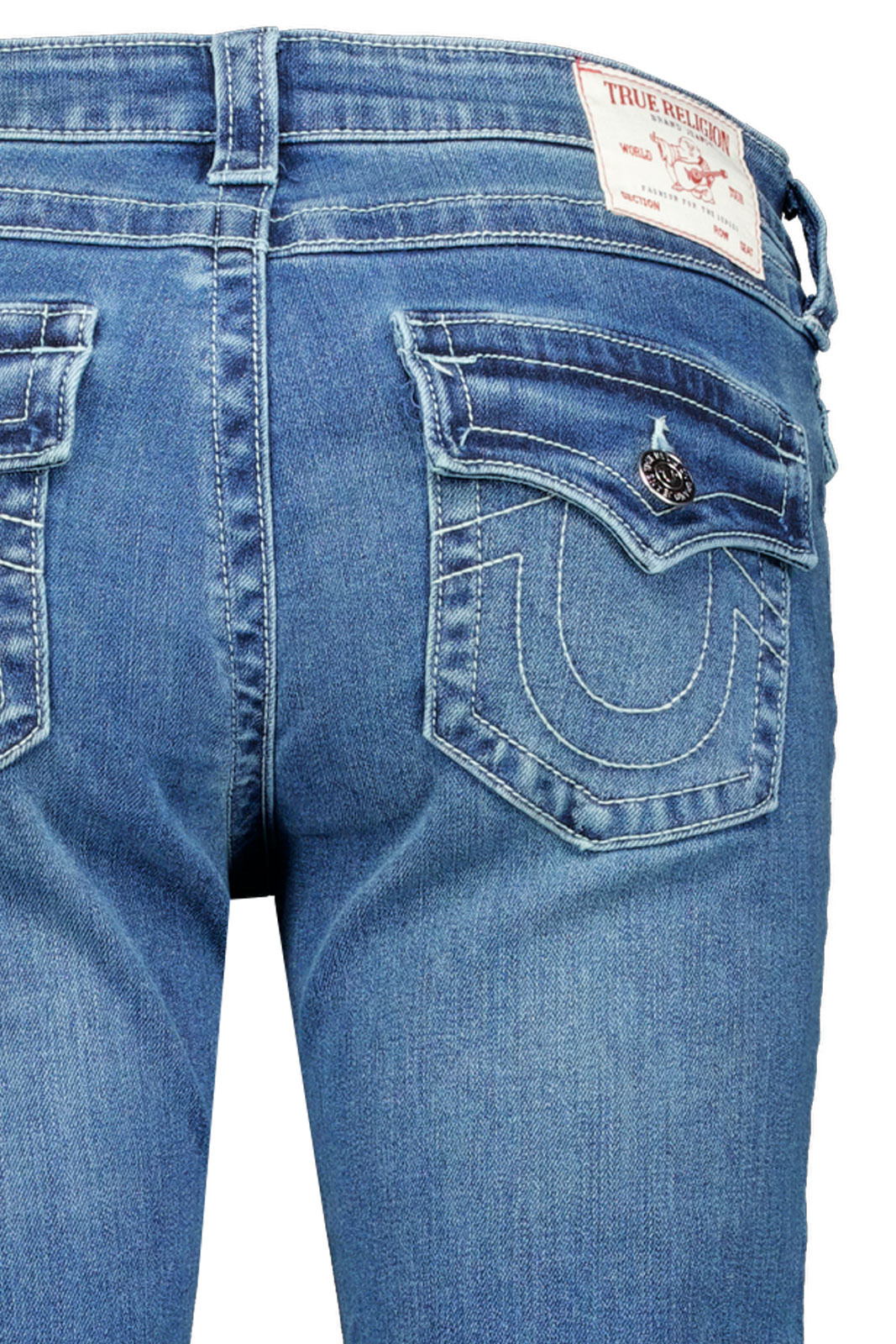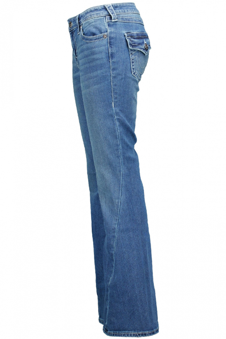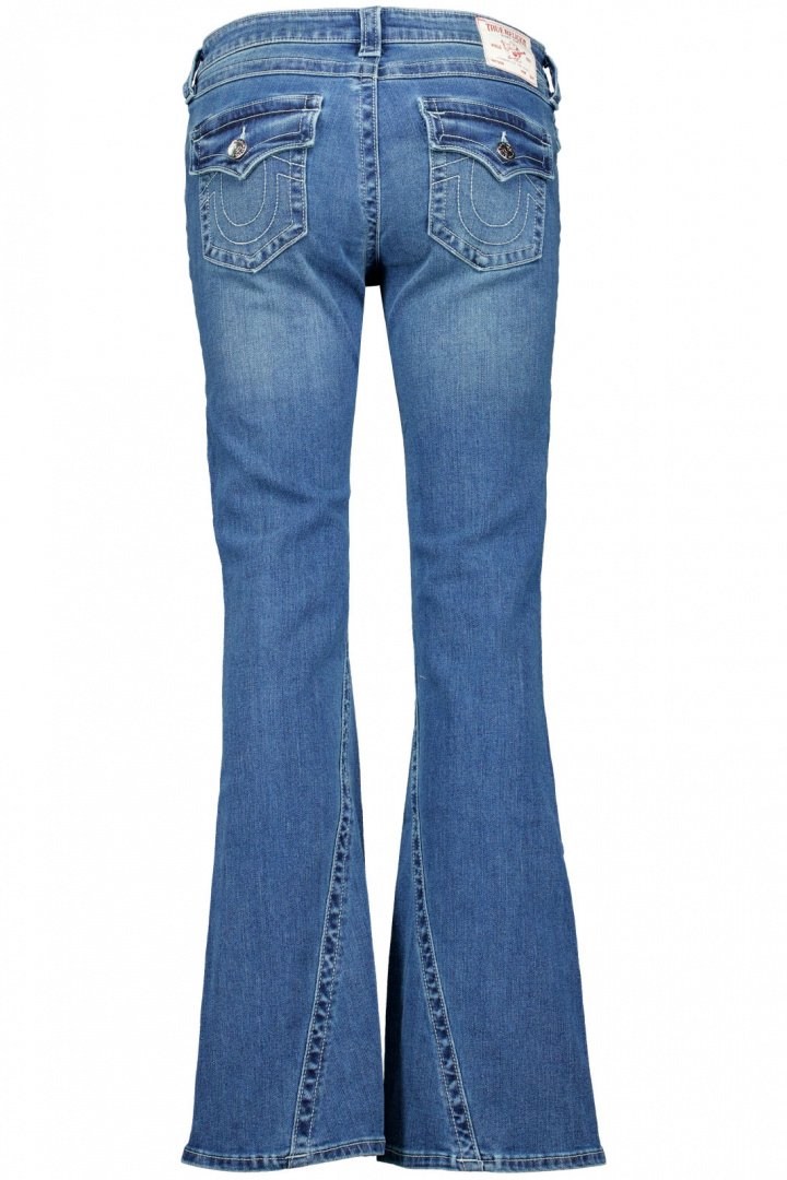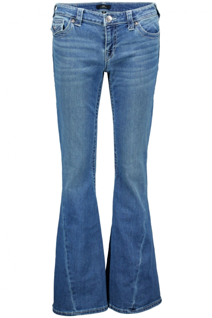 Joey Low Rise Flap Jeans från True Religion är en damjeans som förenar en låg midja med en smickrande utsvängd flaresilhuett. Den låga midjan följer höfterna och öppnar upp benen i en elegant, bredare silhuett ned mot anklarna, vilket skapar en modern men tidlös look. Den klassiska femficksdesignen kombineras med knapp- och dragkedjeflyg för en autentisk jeanskänsla som känns bekväm i vardagen och snygg i kvällens outfit.