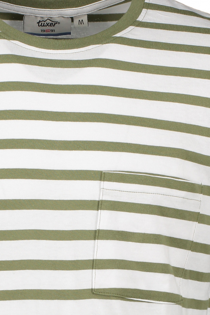 T-shirt från Tuxer.Jeff T-shirt.Artikelnummer: 202182- Normal passform- Rundad halsringning- Öppen bröstficka- T-shirt herrJeff T-shirt från Tuxer - Perfekt för den stilmedvetne mannenUpptäck Jeff T-shirt från Tuxer, en t-shirt som kombinerar stil och komfort för den moderna mannen. Med sin normala passform ger denna t-shirt en avslappnad och samtidigt skräddarsydd känsla som passar perfekt för både vardag och fritid.Jeff T-shirt kännetecknas av sin rundade halsringning som ger en sofistikerad touch, och den praktiska öppna bröstfickan som ger en unik detalj och gör att t-shirten känns extra speciell. Oavsett om du bär den ensam eller som ett lager under en skjorta, kommer denna T-shirt att lyfta din stil.Tillverkad i 100% mjuk och hållbar bomull erbjuder Jeff T-shirt en fantastiskt bekväm känsla mot huden. Bomullens andningsförmåga gör den perfekt för både varma och svala dagar, och garanterar att du förblir bekväm hela dagen.Med Jeff T-shirt får du inte bara en snygg och elegant t-shirt, utan också en pålitlig och mångsidig garderobsmust-have. Den är lätt att kombinera med olika plagg och stilar, vilket gör den till ett utmärkt val för alla tillfällen. Gör ett smart val för din garderob och välj Jeff T-shirt från Tuxer - en tidlös klassiker som aldrig går ur stil. Beställ din idag och upplev skillnaden själv!Tack för att du handlar i vår webbshop. Besök oss även i vår butik i Vingåker. Läs mer på www.vfo.se