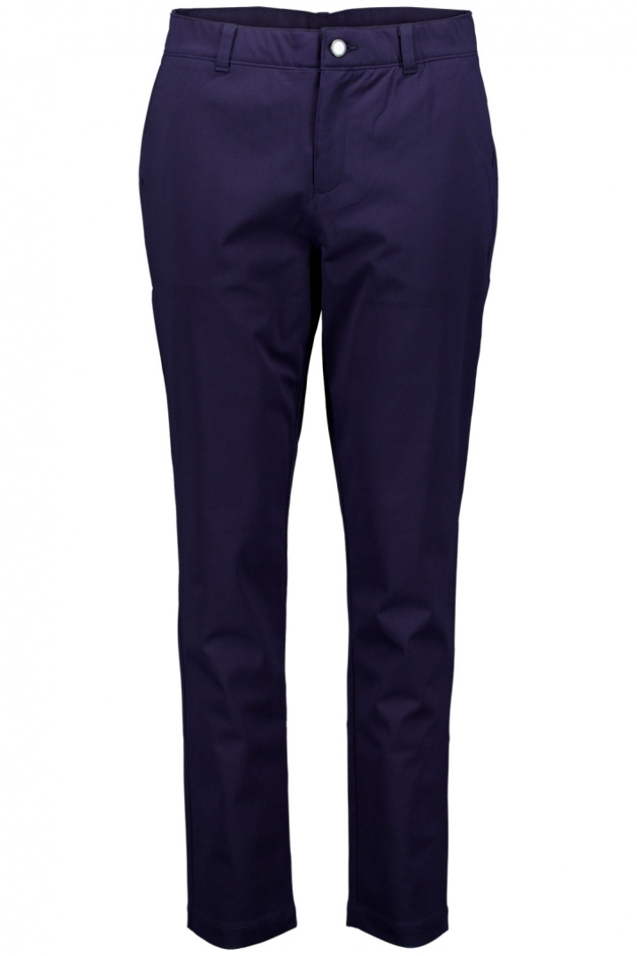 Framsidan stängs med knapp och zipfg (dragkedja) för en ren line och trygg passform. Öppna sidofickor ger smidig access när du behöver extra plats för golfbollar eller små personliga saker, medan passpoalfickor baktill ger en klassisk detalj och en elegant finish. Den avsmalnande benen ger en sportig skärning som passar både ronder och träning utan att kännas tung.