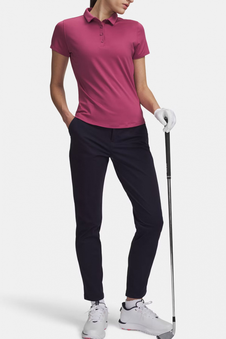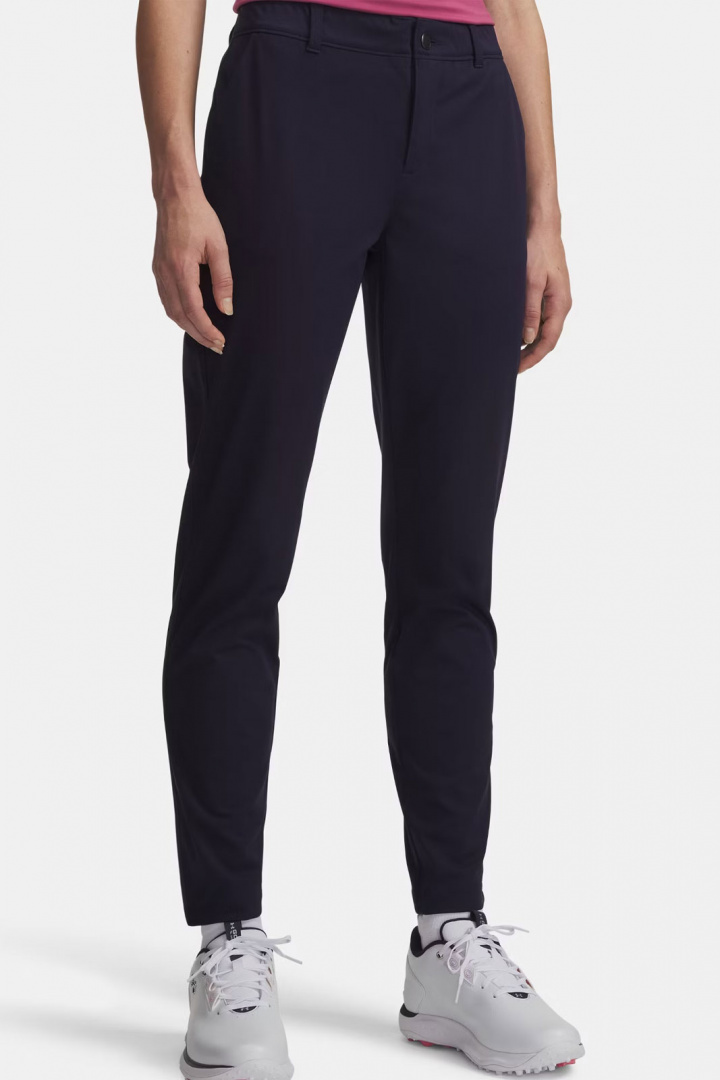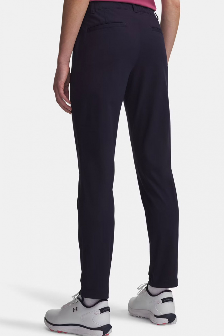 Upptäck Under Armour Ua Drive Pant - en damgolfbyxa som kombinerar sportig funktion och modern stil. Medelhög midja och ett avsmalnande snitt ger en följsam, snygg silhuett som sitter bekvämt under hela rundan utan att begränsa rörelsen. Denna golfbyxa för damer är utformad för att följa kroppen genom svingen samtidigt som den behåller en prydlig och professionell look på banan.