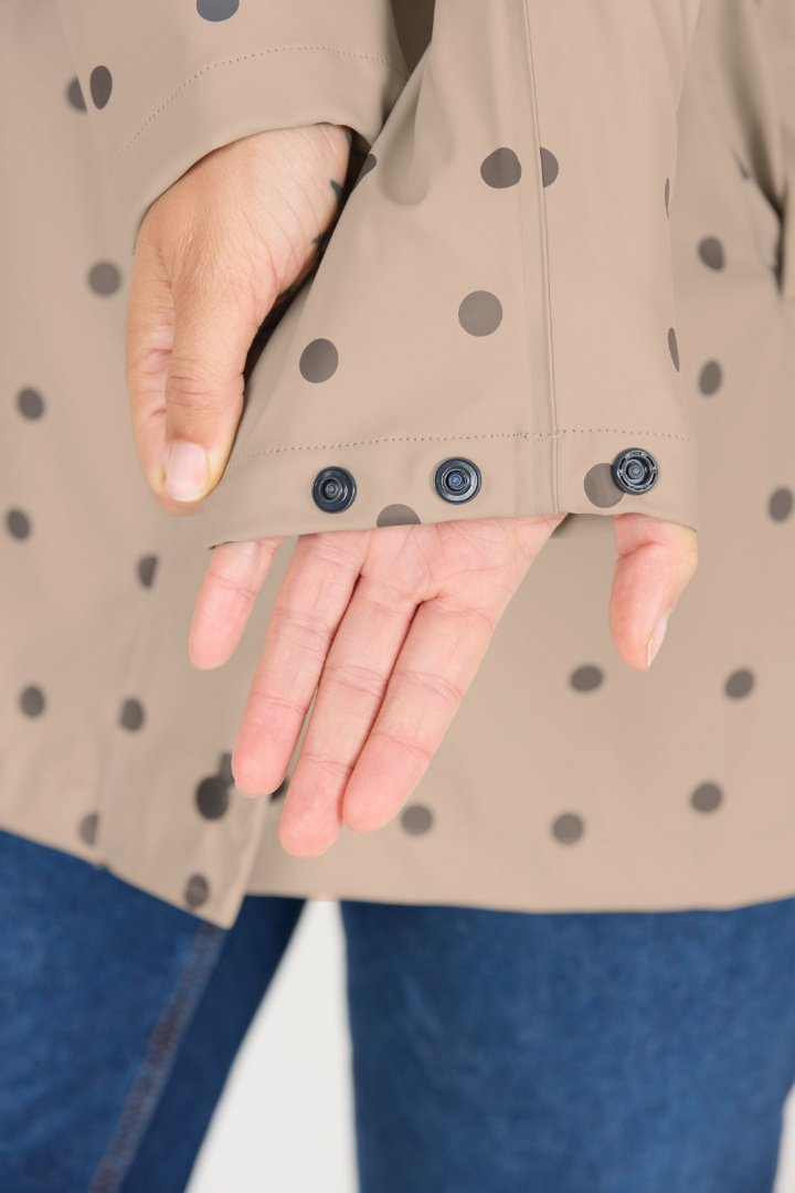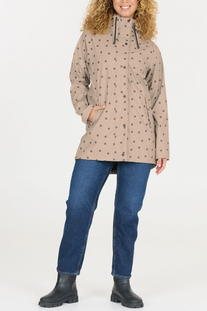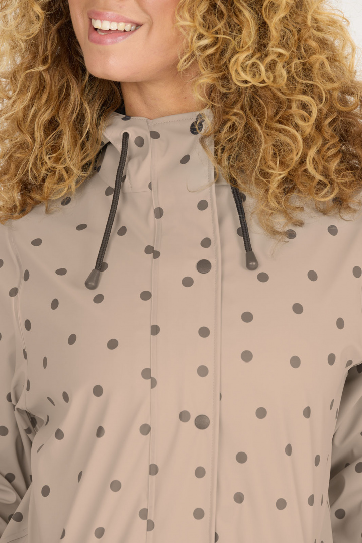 Sunrise W Aop Pu Jacket har en stilren prickig design som ger ett tidlöst och ändå modernt utseende. Den praktiska luvan med dragsko kan enkelt justeras för att skydda mot vind och regn. Den dolda dragkedjan framtill ger jackan en ren och sofistikerad look, samtidigt som två fickor med dragkedja erbjuder säker förvaring för dina värdesaker.