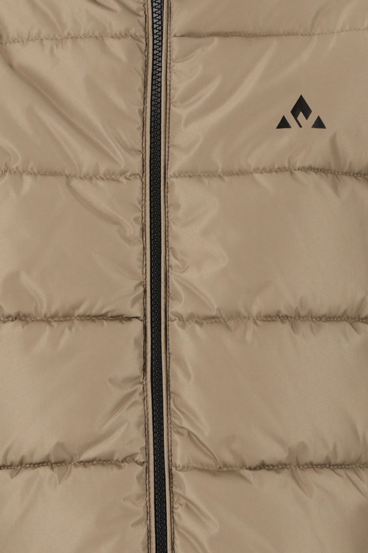 Tillverkad av 100% polyester både inuti och utanpå, denna jacka är konstruerad för att stå emot kyla och blöta väderförhållanden. Den vadderade designen ger extra värme och isolering, vilket gör den till ett idealiskt val för utomhusaktiviteter. Jackan har en stilren ribbad mudd vid ärmsluten som förhindrar kall luft från att tränga in, vilket ger en snug fit.