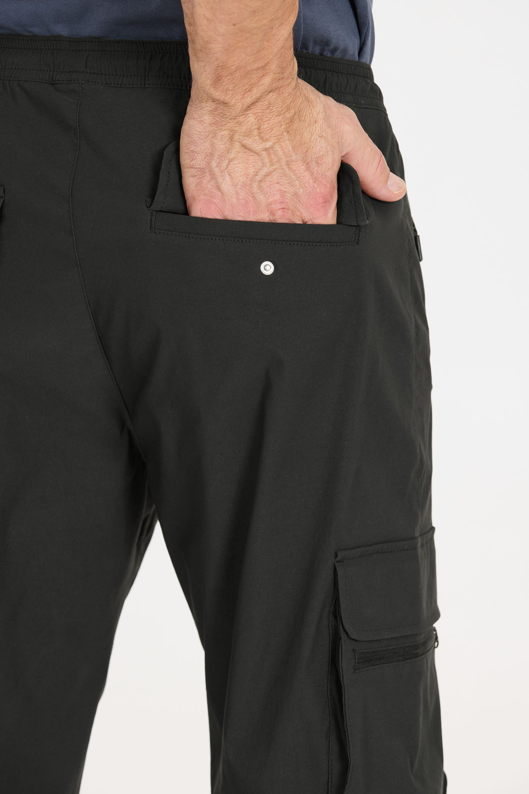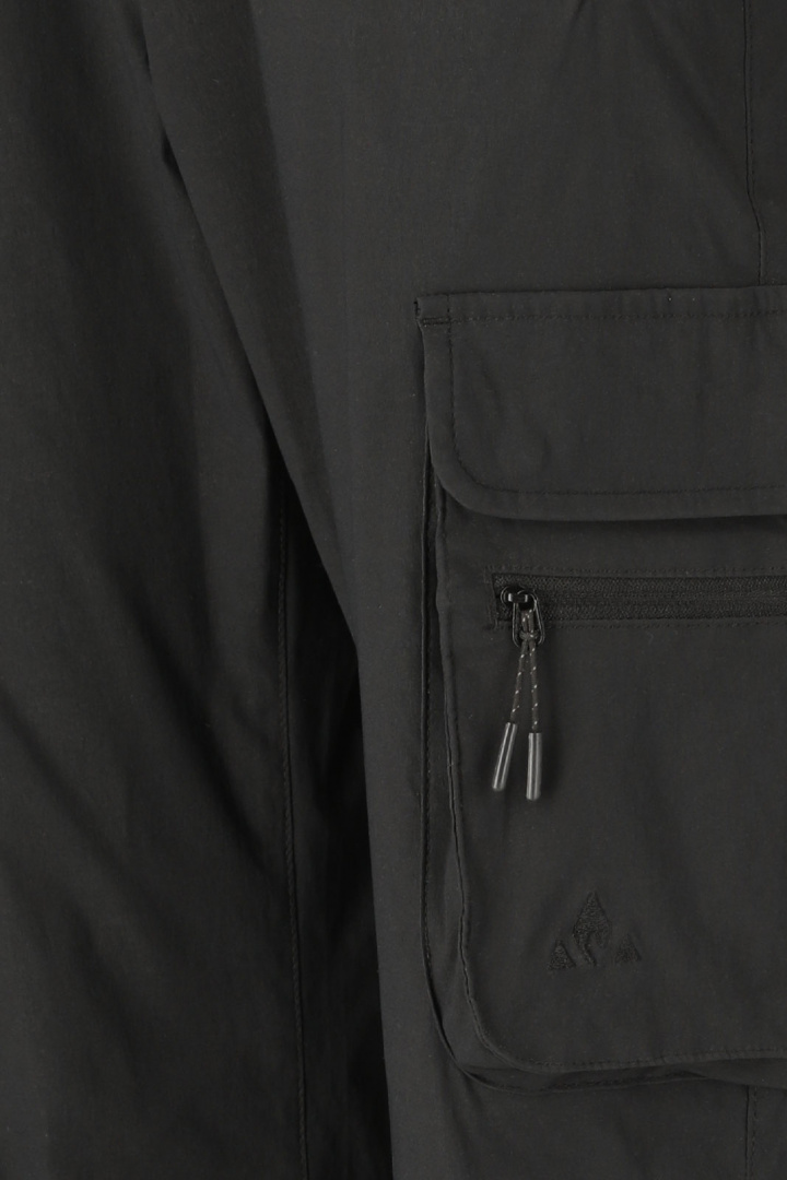Designen kombinerar praktiska detaljer som gör den till ett självklart val. Sidofickor med dragkedja erbjuder säkert förvaring av nycklar och mindre föremål, samtidigt som benfickor med lock och bakfickor med lock ger plats för det nödvändiga utan att sakerna halkar ur. Resåren i bensluten hjälper byxorna att sitta bra över kängorna och hindrar att de glider upp när du rör dig i oländig terräng. Denna genomtänkta design gör Portus M Track Pants till ett mångsidigt val för aktivt friluftsliv.