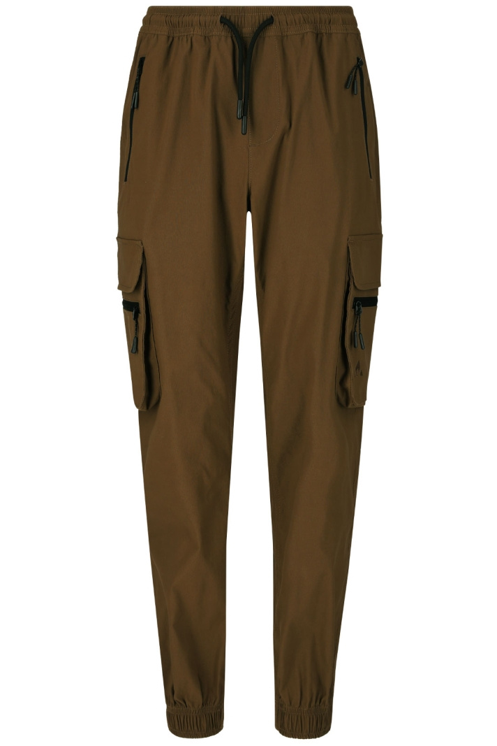 Byxans praktiska detaljer gör den till ett säkert val för aktiva dagar. Sidofickor med dragkedja håller nycklar och småsaker säkra under vandringen, medan benfickor och bakfickor med lock ger extra förvaring utan att skava mot kroppen. Resåren i benslutet ger en snygg avslutning och gör det enkelt att anpassa längden efter skostorlek och terräng.