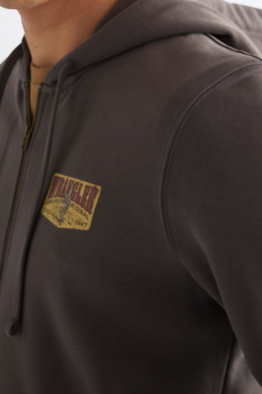 Även om Wrangler främst är kända för sina jeans har de ett utökat sortiment. Du kan matcha dina jeans med en Wrangler t-shirt med tryck. De är ofta inspirerade av tidsepoker som 70-talet vilket de låter ta plats på tröjor och t-shirts.