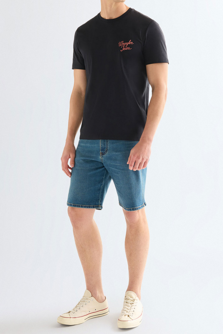 T-shirt från Wrangler.Logo Tee.Artikelnummer: 112378502- Normal passform- Rundad halsringning- Printat tryck- T-shirt herrUpptäck Wrangler Logo Tee Jeans - en klassisk herr-T-shirt i 100% bomull som kombinerar enkelhet med en distinkt Wrangler-känsla. Med normal passform sitter den skönt utan att känna sig för åtsmitande, medan den runda halsringningen ger en tidlös och bekväm look som passar till vardagliga outfits både under jacka eller sweater. Det printade trycket ger pluss för stil och varaktighet, så du får en t-shirt som verkligen syns utan att överdriva.Materialet talar för kvalitet och komfort: ren bomull ger en mjuk, behaglig känsla mot huden och god andningsförmåga för hela dagen. Det minimalistiska men tydliga designet förstärker den ikoniska Wrangler-looken, vilket gör att denna T-shirt enkelt kan paras ihop med dina favoritjeans eller chinos för en avslappnad, men ändå genomtänkt outfits. Wrangler Logo Tee Jeans är ett pålitligt basplagg som passar både till vardags och helgutflykter, och som du kan återanvända säsong efter säsong utan att kompromissa med stil eller komfort. Finns i herrstorlekar så att du hittar rätt passform direkt - ett smart val för den som söker en bekväm, mångsidig och hållbar T-shirt i bomull.Tack för att du handlar i vår webbshop. Besök oss även i vår butik i Vingåker. Läs mer på www.vfo.se