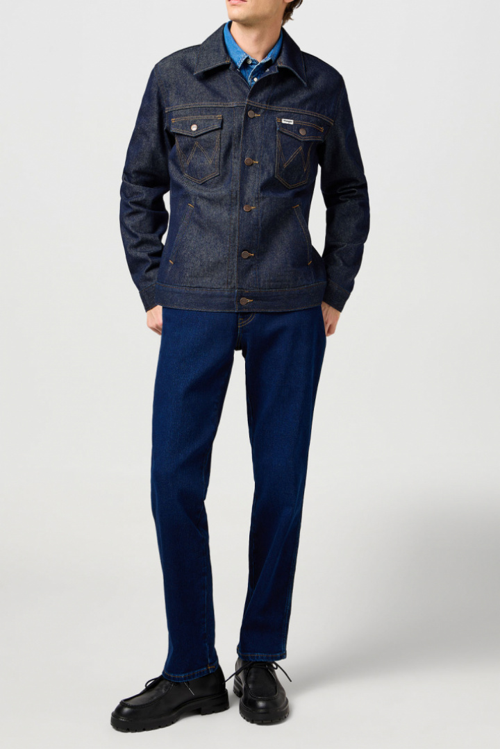 Jeansjacka från Wrangler.Regular Jacket.Artikelnummer: 112362391- Normal passform- Klassisk krage- Fyrkantig manschett- Knappknäppning framtill- Två öppna fickor- Två bröstfickor med lock och knapp- Jeansjacka herrRegular Jacket från Wrangler ? En tidlös favorit för herrarUpptäck den perfekta jeansjackan för alla tillfällen med Regular Jacket från Wrangler. Denna jacka erbjuder en normal passform som ger en bekväm och stilren look, idealisk för både vardag och mer avslappnade tillställningar.Regular Jacket har en klassisk krage och fyrkantiga manschetter som ger ett tidlöst uttryck. Den praktiska knappknäppningen framtill kompletteras av två öppna fickor samt två bröstfickor med lock och knapp ? perfekt för att förvara allt du behöver inom räckhåll. Den kombinerar funktionalitet med stil och blir snabbt en favorit i din garderob.Tillverkad av 100% bomull, erbjuder denna jacka både hållbarhet och komfort. Bomullen är mjuk mot huden och låter dig röra dig fritt, vilket gör jackan till ett utmärkt val för alla säsonger.Regular Jacket från Wrangler är en investering i både stil och kvalitet. Med sin tidlösa design och mångsidighet kan du enkelt styla den med allt från t-shirts till skjortor. Jackan är lätt att matcha med jeans eller chinos och passar perfekt för en avslappnad brunch eller en kväll ute med vänner.Välj Regular Jacket från Wrangler och sätt en klassisk prägel på din stil. Den perfekta kombinationen av funktionalitet och mode gör denna jacka till ett måste i varje mans garderob. Missa inte chansen att lägga den till din samling!Tack för att du handlar i vår webbshop. Besök oss även i vår butik i Vingåker. Läs mer på www.vfo.se