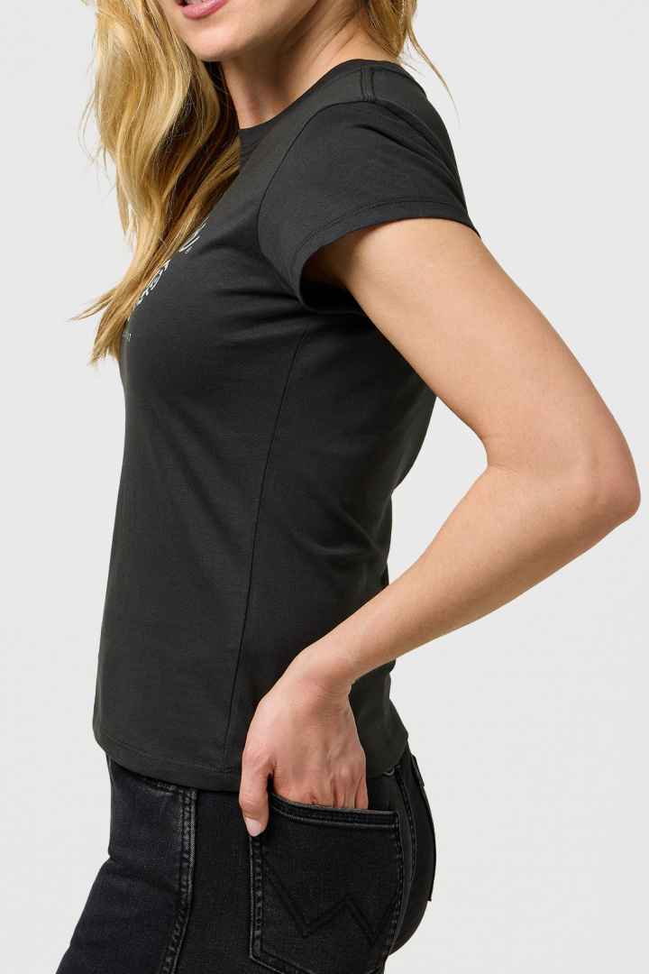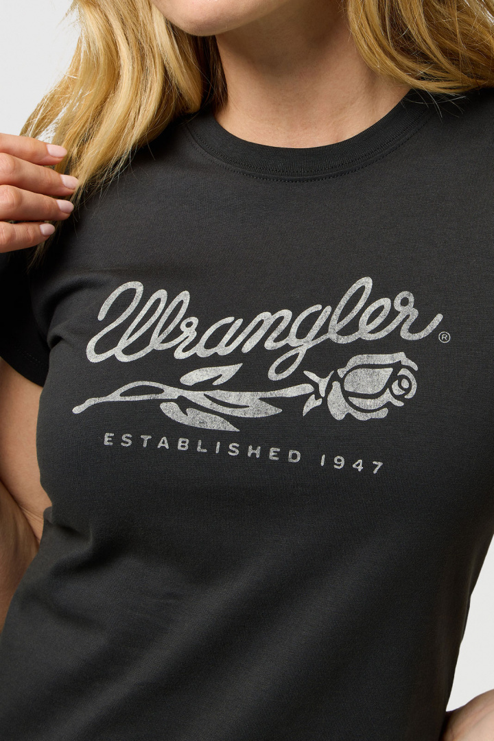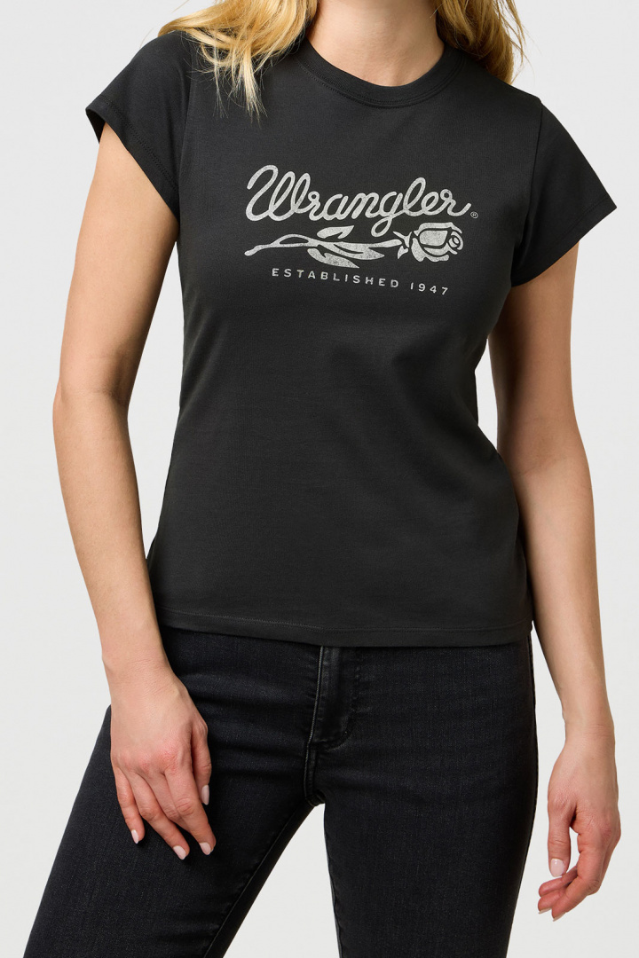 T-shirts från Wrangler.Shrunken Band Tee.Artikelnummer: 112370820- Normal passform- Rund halsringning- Printat logotyp- T-shirt damShrunken Band Tee T-Shirt från Wrangler - En Tidlös Klassiker för DamtUpptäck den perfekta kombinationen av stil och komfort med Shrunken Band Tee T-Shirt från Wrangler. Denna t-shirt är designad med en normal passform som smickrar alla kroppstyper, vilket gör den till ett idealiskt val för både vardagliga och mer avslappnade tillfällen.Tillverkad av 100% bomull, erbjuder denna t-shirt en mjuk och lätt känsla mot huden. Bomullens naturliga egenskaper gör att den andas väl och ger en behaglig komfort hela dagen lång, oavsett om du är ute på språng eller kopplar av hemma.Med en rund halsringning och en stilren, tryckt logotyp, är Shrunken Band Tee både modern och tidlös. Den subtila logotypen ger en unik touch utan att ta bort fokus från den eleganta designen. T-shirten kan enkelt kombineras med jeans, kjolar eller shorts för att skapa en avslappnad men stilig look.Denna t-shirt är inte bara ett plagg, det är en del av din personliga stil. Wrangler är känt för sin kvalitet och hållbarhet, vilket gör detta plagg till en långsiktig investering i din garderob. Den tidlösa designen gör att den enkelt kan bäras år efter år, oavsett modetrender.Gör Shrunken Band Tee T-Shirt till en del av din stil och upplev en fantastisk kombination av komfort, kvalitet och tidlös design. Perfekt för modeälskaren som värdesätter både estetik och funktionalitet. Säkra ditt exemplar idag och ta ditt mode till nästa nivå!Tack för att du handlar i vår webbshop. Besök oss även i vår butik i Vingåker. Läs mer på www.vfo.se