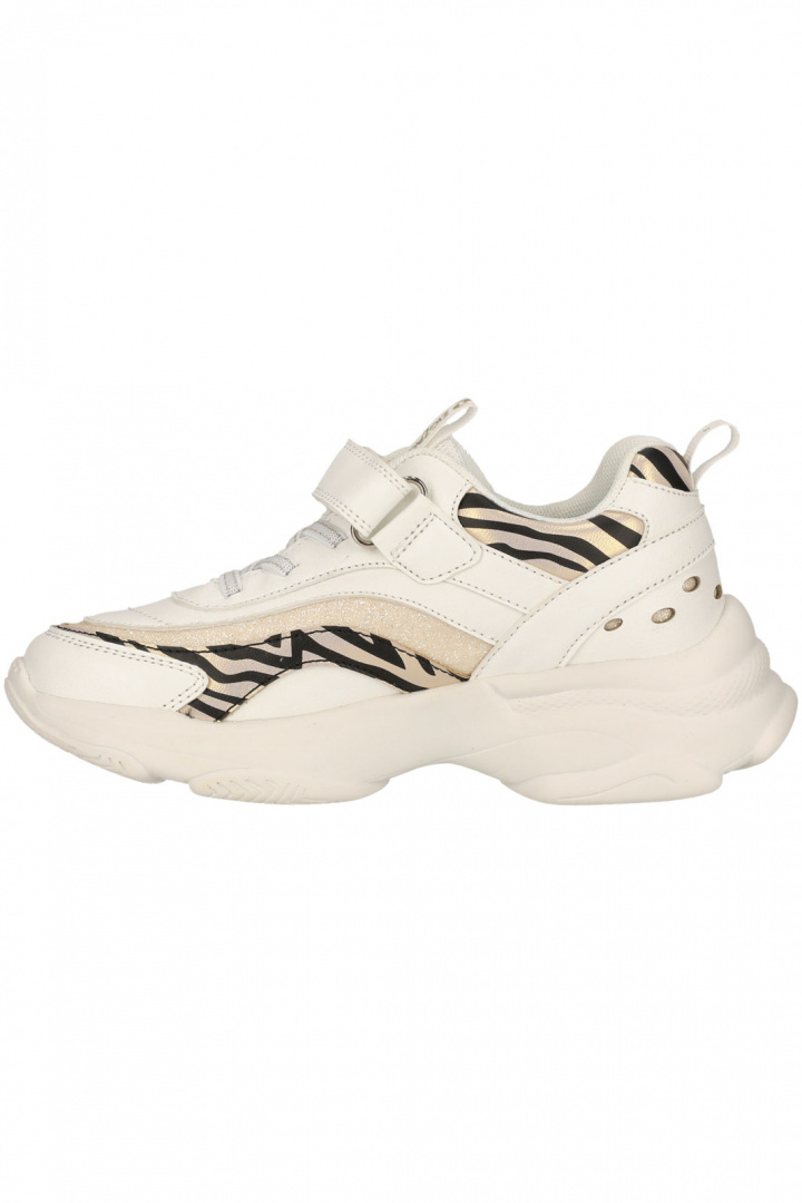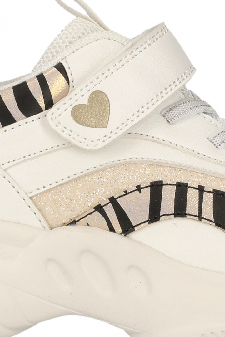 Dessa sneakers är utrustade med ett smart kardborrespänne, vilket gör dem enkla att ta av och på. Den mönstrade designen tillsammans med glitterdetaljer ger en lekfull touch som säkert kommer att bli en favorit bland de yngre. Yttersulan av gummi ger ett bra grepp och säkerställer att ditt barn kan springa och leka utan att halka.