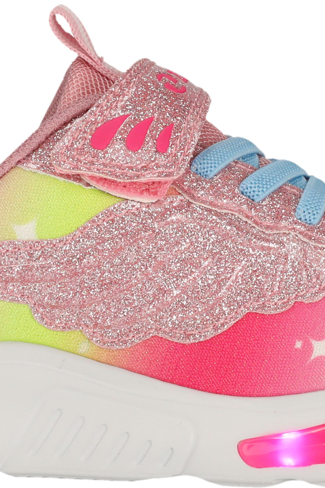 Denna skomodell skiljer sig från mängden med sina unika detaljer: en blinkande LED-sula som ger extra synlighet och ett lekfullt uttryck, samt glitterdetaljer som får varje steg att känna extra roligt. Det praktiska kardborrespännet gör det enkelt för barnen att själva få på och av skorna, samtidigt som det säkrar en stabil passform under hela dagen. Produkten känns väl genomtänkt där designmöten funktion - bekvämt material på insidan, tålig utsida och en greppvänlig gummi-yttersula - möts i ett stilrent, barnvänligt utförande.