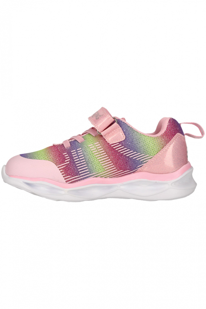 Lampaya Kids Shoes W/lights är en lekfull och praktisk sneakers från Zigzag som gör varje steg lite roligare. Skon har utsida i textil och syntet, insida i textil och en slitstark yttersula i gummi. Den praktiska kardborrespännen gör det enkelt för barnet att ta på sig skorna själv och justera passformen efter behov. Den blinkande LED-sulan lyser vid rörelse och ger en extra träningsglädje under lek och promenader, medan den glittriga finishen ger en trendig och uppskattad look för små fötter.